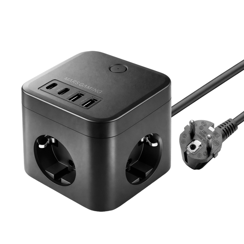 CARGADOR CUBO 3xAC + 2xUSB-C + 2xUSB-A 20W PD+GaN TYPE-F NEGRO MARS GAMING