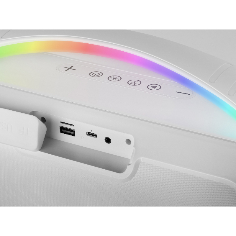 50W RMS/ Bluetooth 5.3, MicroSD, Aux-IN, FM/ Iluminación ambiental RGB/ Batería de 5000mAh