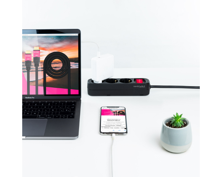 BASE DE 3 ENCHUFES x4USB (2 USB A + 2 USB-C) + INTERRUPTOR BLANCO NANOCABLE