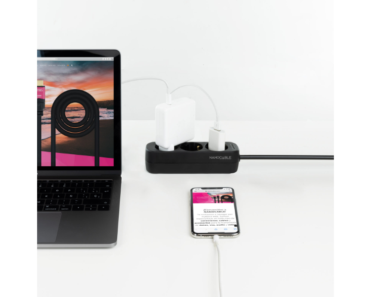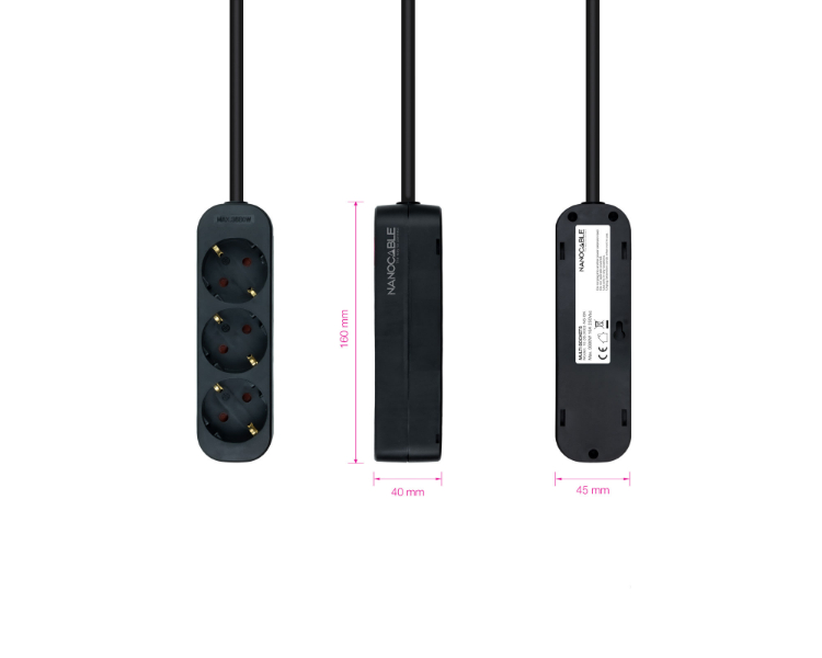 REGLETA PROTECTORA 3 TOMAS NEGRO NANOCABLE