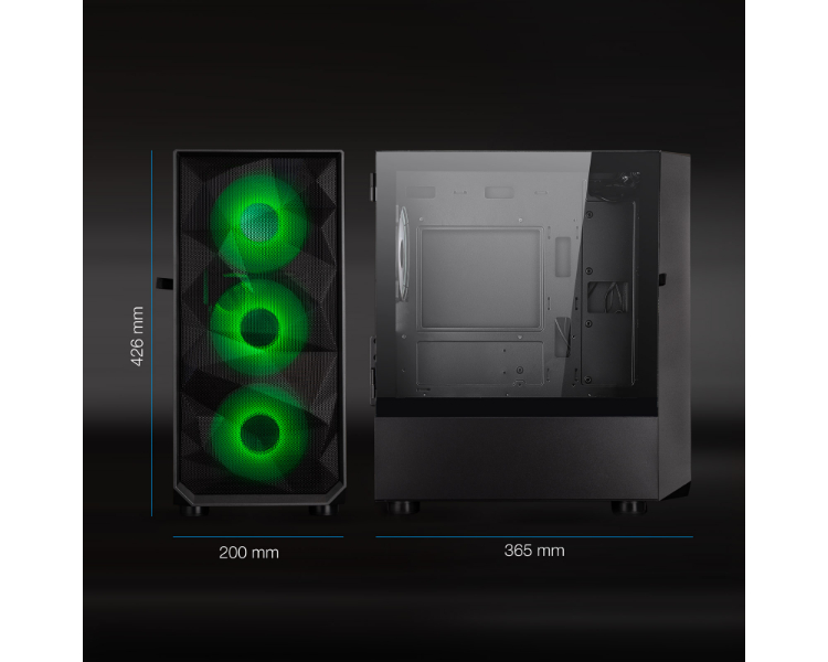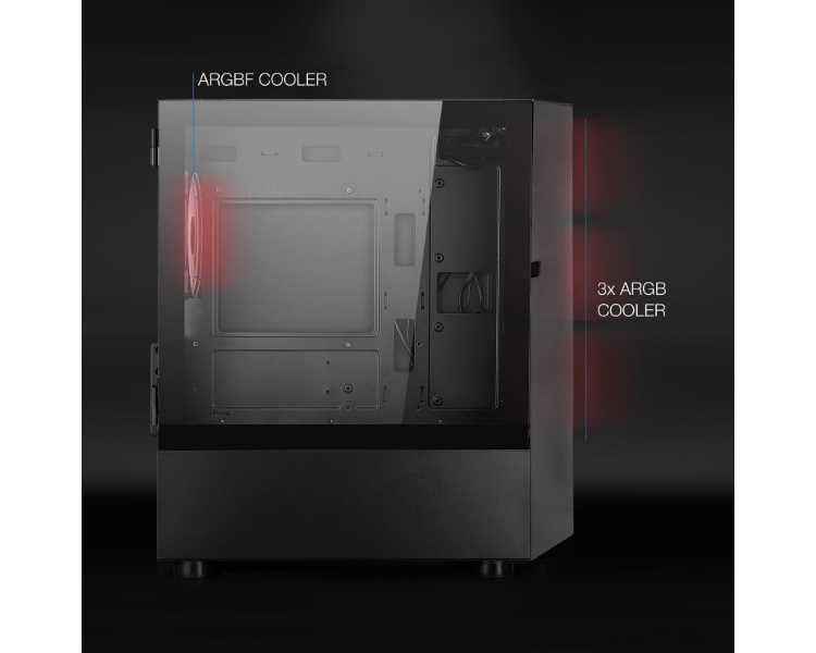 Bahías INT:2x3'5, 3x2'5/ 1xUSB3.0, 2xUSB2.0 /Audio IN/OUT/ Ventana lateral cristal templado con bisagra