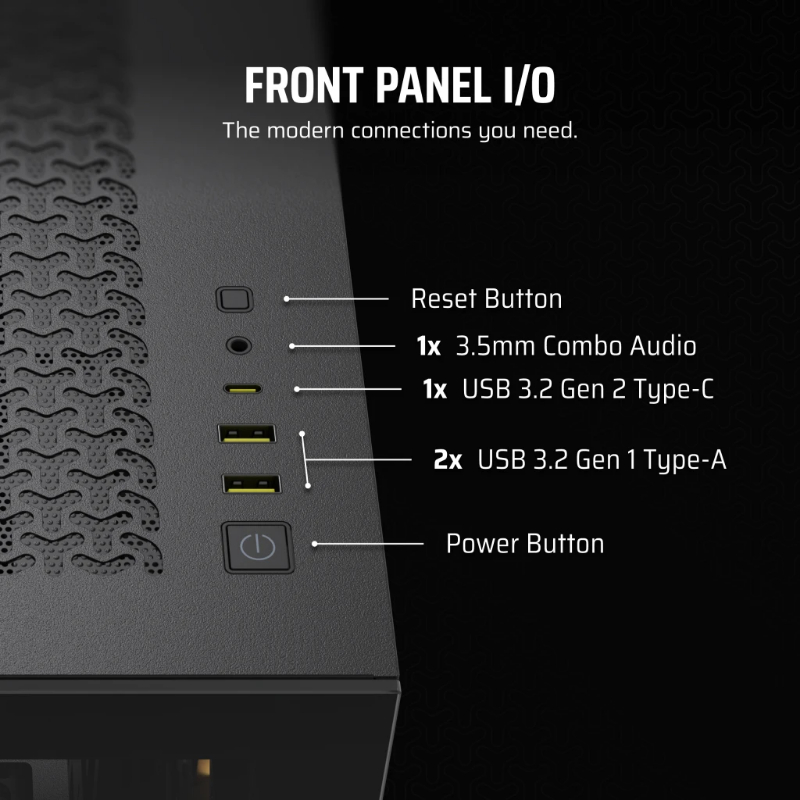 INT: 2x2'5, 2x3'5/ 2xUSB3.2, 1xUSB3.1 Tipo-C/ Audio In/Out/ 3 Ventiladores ARGB/ Compatible con placas de conector inverso (Asus BTF y MSI Project Zero)