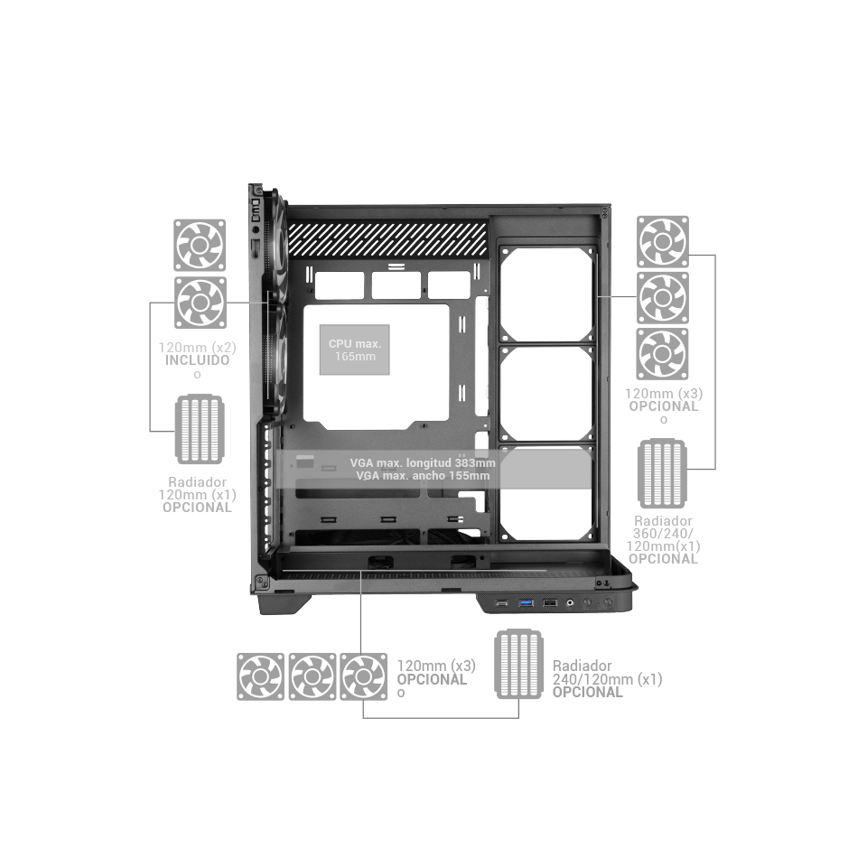 Caja ATX / 1x3.5" HDD + 3x2.5" SSD / 2xARGB /1xUSB 3.0, 1xUSB 2.0/ USB-C / Negro