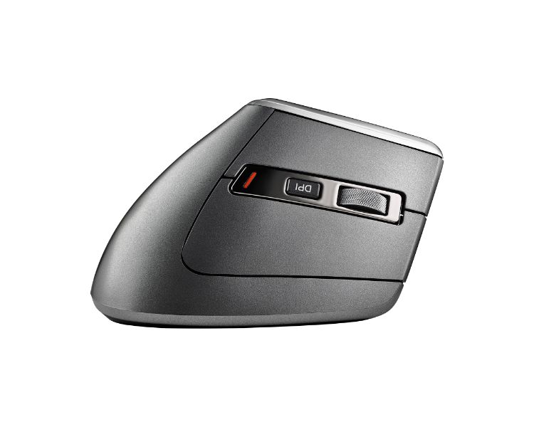 Este ratón vertical cuenta con 5 botones y una rueda de desplazamiento.